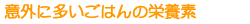 | ごはんには糖質のほかにも、たくさんの栄養素があるのをご存じですか?意外にもたんぱく質、ビタミン、ミネラル、食物繊維が豊富に含まれている万能食なのです。脂肪は逆に少なく、パン(6枚切り)の3分の1程度。欧米型の脂肪分の多い食生活の広がりが、様々な病気が増えた原因ともいわれています。ですから、ごはんを中心にして栄養バランスのいい食生活にすれば、色々な病気も防げるというわけです。 |